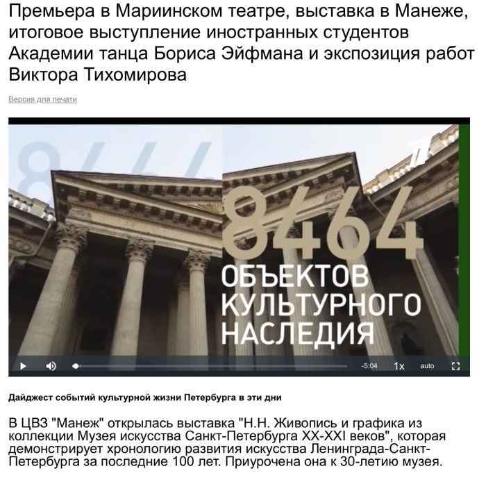 Премьера в Мариинском театре, выставка в Манеже, итоговое выступление иностранных студентов Академии танца Бориса Эйфмана и экспозиция работ Виктора Тихомирова